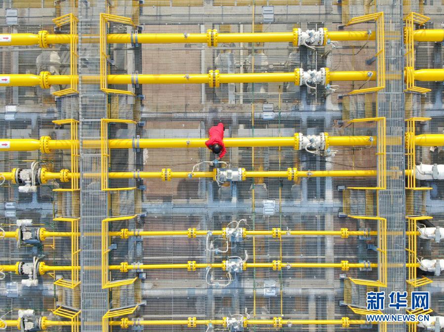 2月3日,在遼河油田儲氣庫公司雷61作業(yè)區(qū),來自吉林遼源的副區(qū)長韓鵬在作業(yè)區(qū)巡檢。今年他留在當(dāng)?shù)剡^年(無人機照片)。