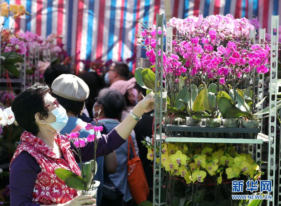 2月6日,市民在香港維多利亞公園的年花銷售點選購鮮花。新華社記者 李鋼 攝