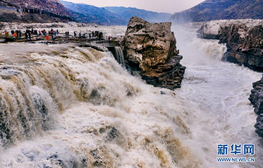 從2月24日起,陜西壺口瀑布景區(qū)恢復(fù)對外開放。隨著氣溫回升,黃河上游冰雪消融,水量增大,壺口瀑布的主瀑布恢復(fù)了往日奔騰咆哮的氣勢,黃河之水奔騰而下,形成壯觀瀑布群。