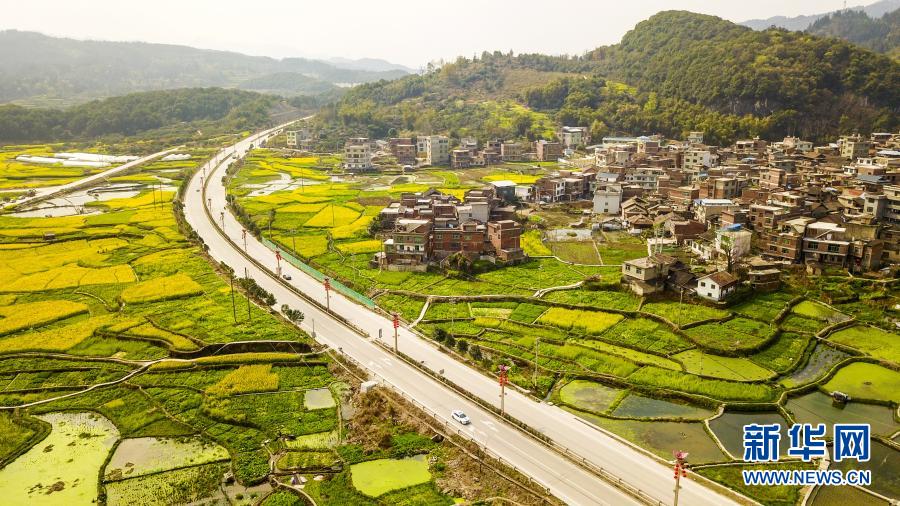 初春時(shí)節(jié),位于貴州省黔東南苗族侗族自治州從江縣貫洞鎮(zhèn)附近的油菜花陸續(xù)盛開,宛若大地披金。古樸寧靜的村莊、四通八達(dá)的鄉(xiāng)村路、色彩斑斕的田野,構(gòu)成春日里一幅幅美麗的鄉(xiāng)村畫卷。