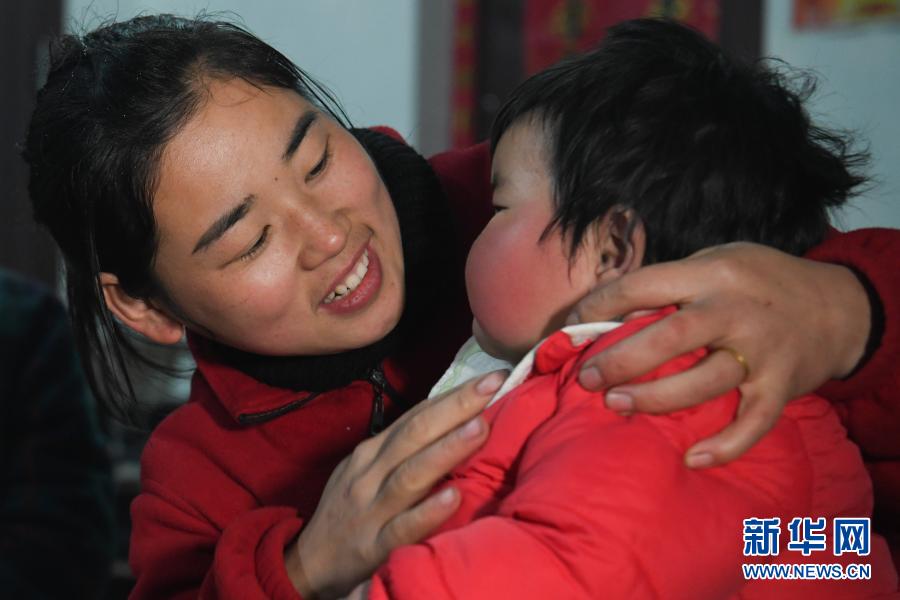 張志菊在家中抱著女兒張毓婉(2月26日攝)。