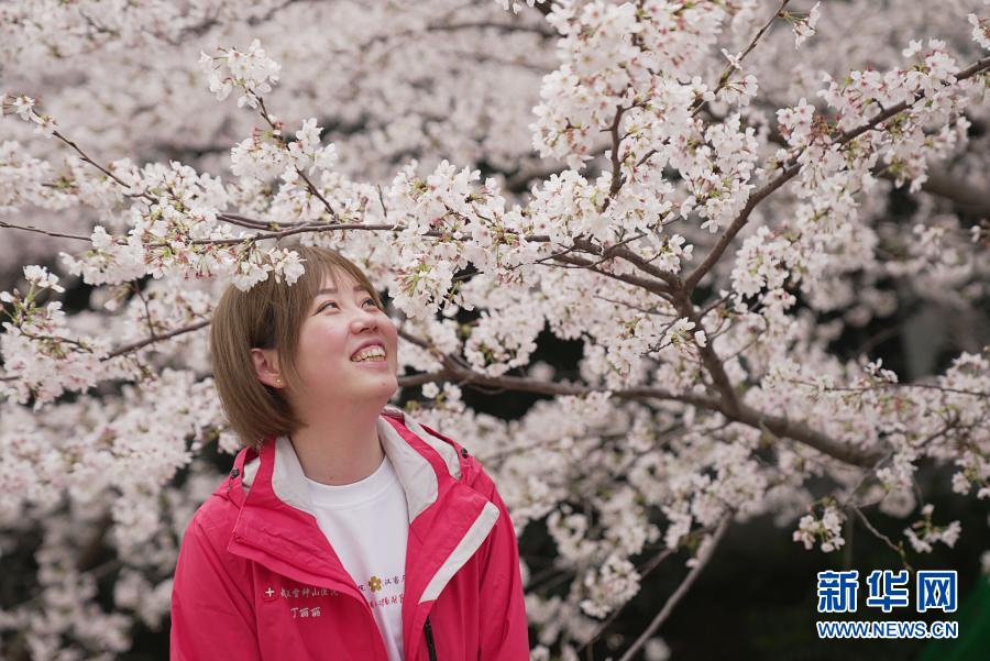 3月13日,武漢雷神山醫(yī)院醫(yī)護(hù)人員在櫻花樹下賞花。新華社記者 熊琦 攝