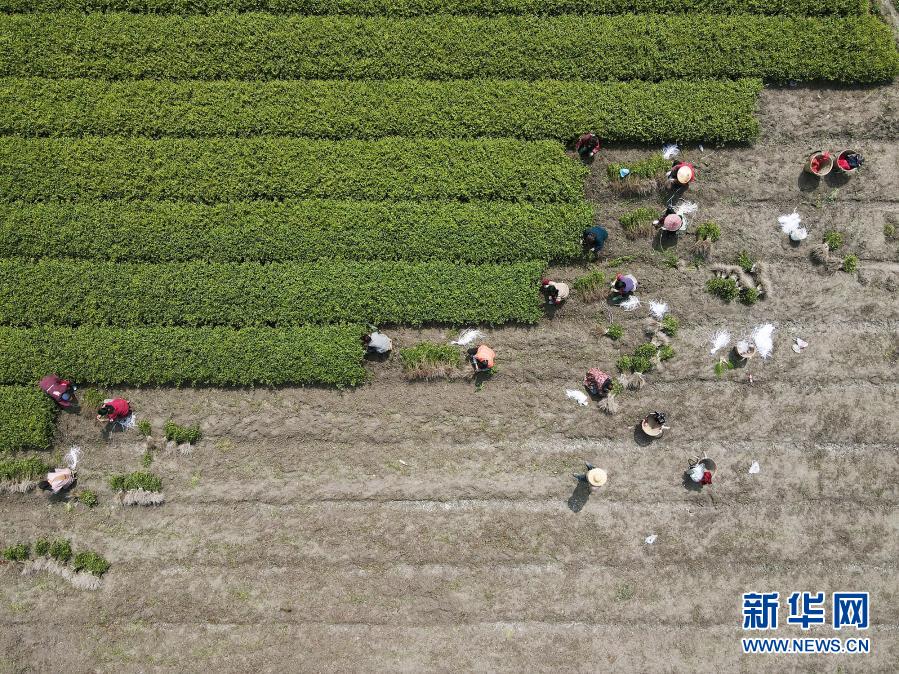 3月13日,在遵義市余慶縣白泥鎮(zhèn)滿溪村,村民在田間勞作(無人機照片)。新華社發(fā)(穆明飛 攝)