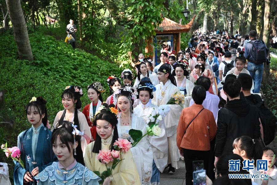 3月13日至14日,第二屆福州西湖花朝節(jié)系列活動(dòng)在福州西湖公園舉行,流觴詩會(huì)、漢服雅集、百花祭典、簪花游園等10場(chǎng)活動(dòng)再現(xiàn)花朝節(jié)傳統(tǒng)民俗文化之美。