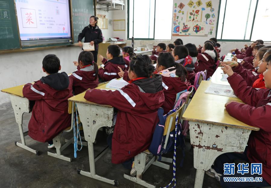 騎路小學二年級學生在教室上課,跳繩掛在他們的座椅背上(3月9日攝)。新華社記者 楊磊 攝