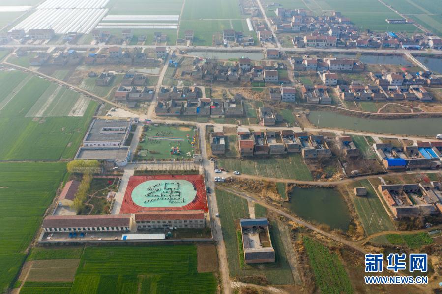 這是騎路小學(xué)所在的江蘇省徐州市睢寧縣慶安鎮(zhèn)騎路劉村(3月10日攝,無人機照片)。新華社記者 李博 攝