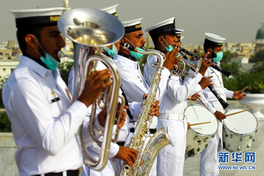 3月23日,樂手在位于巴基斯坦卡拉奇的國父真納墓參加“巴基斯坦日”紀(jì)念活動(dòng)。