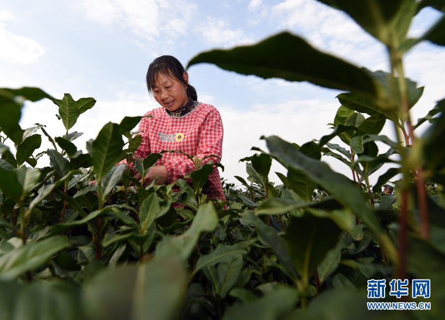 3月24日,茶農(nóng)在黃山毛峰唐模標準化生態(tài)茶園里采茶。