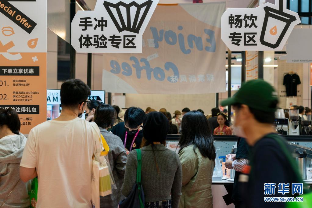 3月29日,人們在會場內(nèi)等待品嘗咖啡。