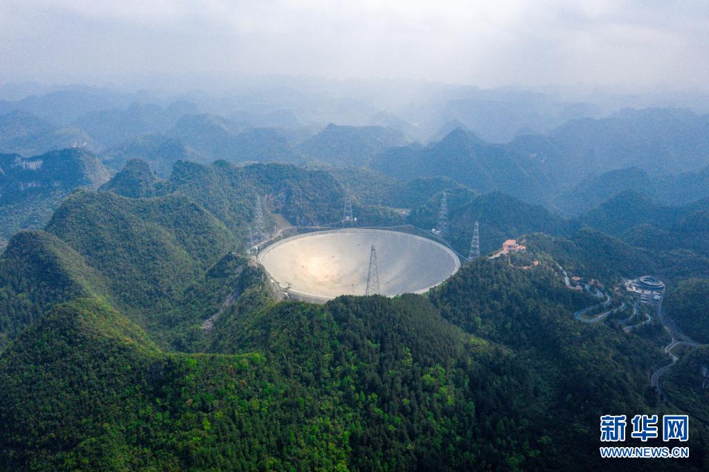 在貴州省平塘縣,被譽為“中國天眼”的500米口徑球面射電望遠(yuǎn)鏡(FAST)在群山中仰望星空,探求著宇宙奧秘。