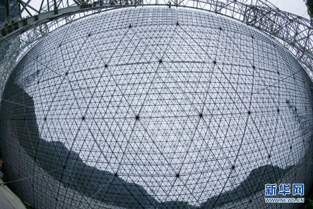 3月28日,從“中國(guó)天眼”內(nèi)部拍攝的反射面板(維護(hù)保養(yǎng)期間魚(yú)眼鏡頭拍攝)。