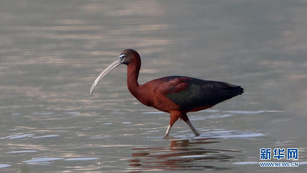 彩鹮在福建省霞浦縣福寧灣灘涂覓食(4月17日攝)。一對彩鹮近日現身福建省霞浦縣福寧灣灘涂的視頻,經當地媒體播發(fā)后引起轟動,各地攝影師及當地生態(tài)保護志愿者紛至沓來,一睹它們的“芳容”。新華社記者 梅永存攝