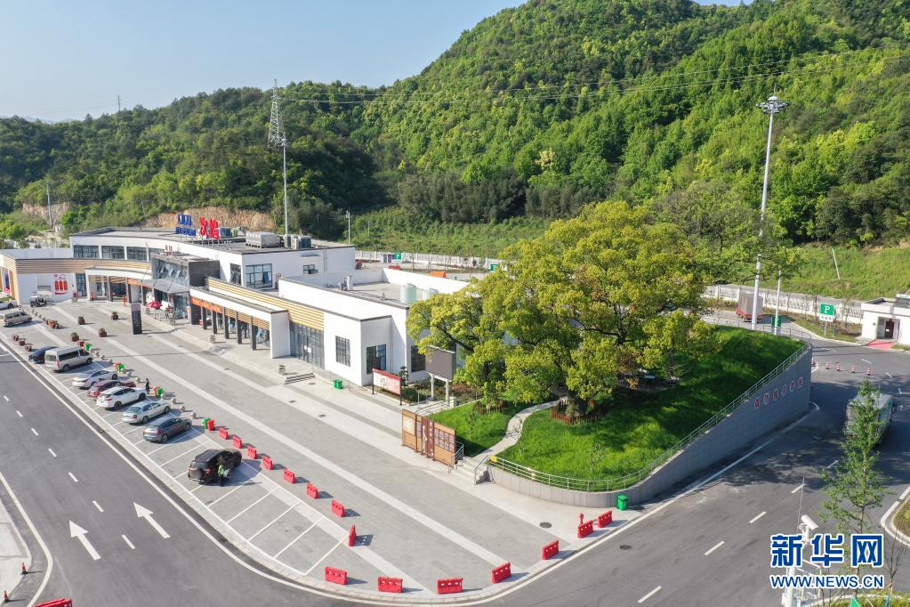 4月19日拍攝的杭州第二繞城高速西復(fù)線次塢服務(wù)區(qū)的古樹(shù)(無(wú)人機(jī)照片)。