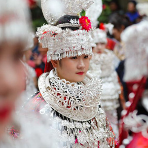今年姊妹節(jié)前夕,母親張元英把女兒盛裝的銀飾拿到銀飾店里進(jìn)行清洗,希望女兒能在盛裝巡演上展示最美的一面。4月25日姊妹節(jié)當(dāng)天,張佳麗早早起床,在母親和同學(xué)的幫助下,開始化妝、穿衣、佩戴銀飾,一直忙到9點才準(zhǔn)備完畢。身著盛裝站在巡演隊伍中,張佳麗說:“這是我們苗族同胞最大的節(jié)日,無論身處何地,我都會如約回家參加活動!”