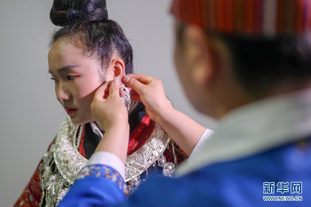 今年姊妹節(jié)前夕,母親張?jiān)雅畠菏⒀b的銀飾拿到銀飾店里進(jìn)行清洗,希望女兒能在盛裝巡演上展示最美的一面。4月25日姊妹節(jié)當(dāng)天,張佳麗早早起床,在母親和同學(xué)的幫助下,開始化妝、穿衣、佩戴銀飾,一直忙到9點(diǎn)才準(zhǔn)備完畢。身著盛裝站在巡演隊(duì)伍中,張佳麗說:“這是我們苗族同胞最大的節(jié)日,無論身處何地,我都會(huì)如約回家參加活動(dòng)!”