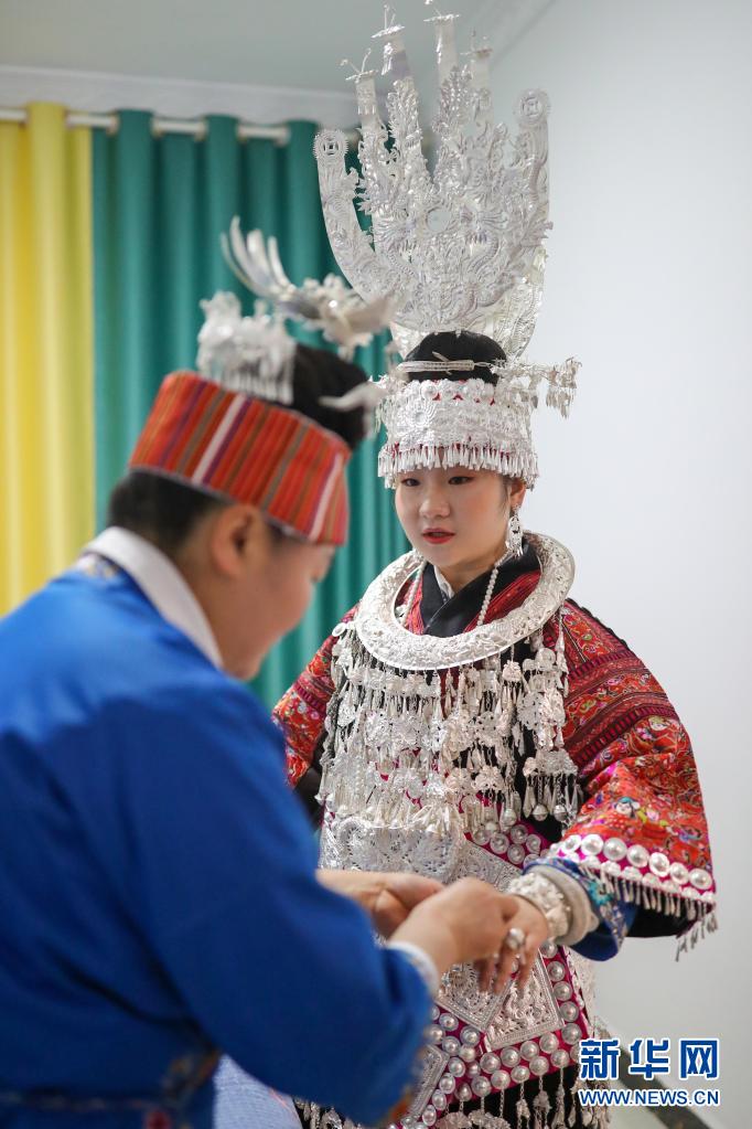 今年姊妹節(jié)前夕,母親張?jiān)雅畠菏⒀b的銀飾拿到銀飾店里進(jìn)行清洗,希望女兒能在盛裝巡演上展示最美的一面。4月25日姊妹節(jié)當(dāng)天,張佳麗早早起床,在母親和同學(xué)的幫助下,開(kāi)始化妝、穿衣、佩戴銀飾,一直忙到9點(diǎn)才準(zhǔn)備完畢。身著盛裝站在巡演隊(duì)伍中,張佳麗說(shuō):“這是我們苗族同胞最大的節(jié)日,無(wú)論身處何地,我都會(huì)如約回家參加活動(dòng)!”