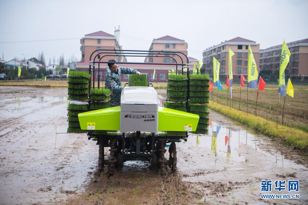 在湖南省益陽市沅江市草尾鎮(zhèn)沅江現(xiàn)代農(nóng)業(yè)技術(shù)研發(fā)基地,工作人員演示插秧機(jī)操作(3月2日攝)。新華社記者 陳思汗 攝