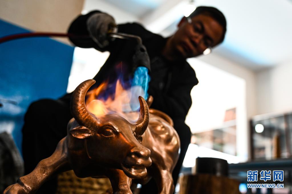 地處滇東北、烏蒙山腹地的云南會(huì)澤縣流傳著具有300多年歷史的斑銅制作工藝。斑銅工藝復(fù)雜,要采用高品位的銅為原料,經(jīng)過(guò)20余道工序制作而成。產(chǎn)品“妙在有斑,貴在渾厚”,風(fēng)格獨(dú)樹(shù)一幟。33歲的張偉是會(huì)澤“張氏斑銅”的第十三代傳人。自幼深受地域文化和家庭熏陶的他,大學(xué)畢業(yè)后,返鄉(xiāng)從事斑銅制作工作。在會(huì)澤古城的“銅匠街”,張偉創(chuàng)辦了斑銅傳習(xí)館,不斷研發(fā)斑銅新產(chǎn)品、傳承著這項(xiàng)非遺技藝?!鞍咩~是一種情感、一種文化,希望在我們這代人的努力下能夠更好地將它傳承下去,讓更多人了解斑銅的獨(dú)特魅力?!睆垈フf(shuō)。