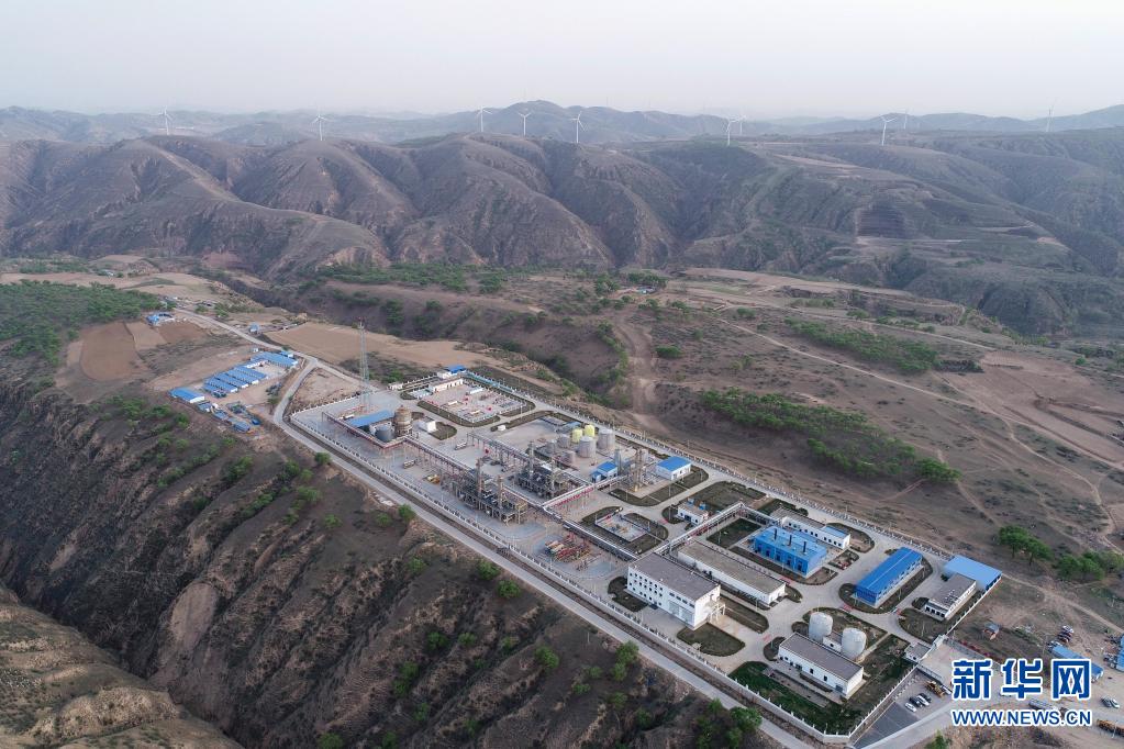 延長(zhǎng)石油集團(tuán)有限責(zé)任公司延長(zhǎng)氣田采氣二廠一處天然氣凈化站(4月28日攝,無人機(jī)照片)。新華社記者 張博文 攝