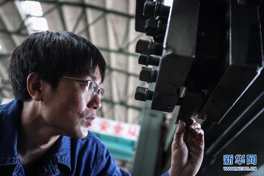 4月30日,王尚典對(duì)機(jī)床進(jìn)行調(diào)整準(zhǔn)備加工配件。