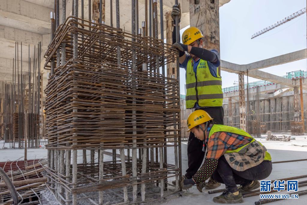 5月1日,中鐵建工集團(tuán)上海九星城項(xiàng)目的工人在工地施工。