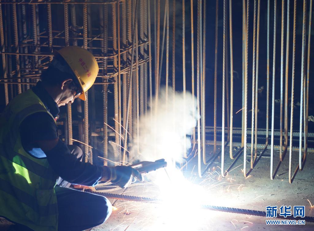 5月1日,工人在昆明地鐵五號線廣福路西口站現(xiàn)場進行焊接作業(yè)。