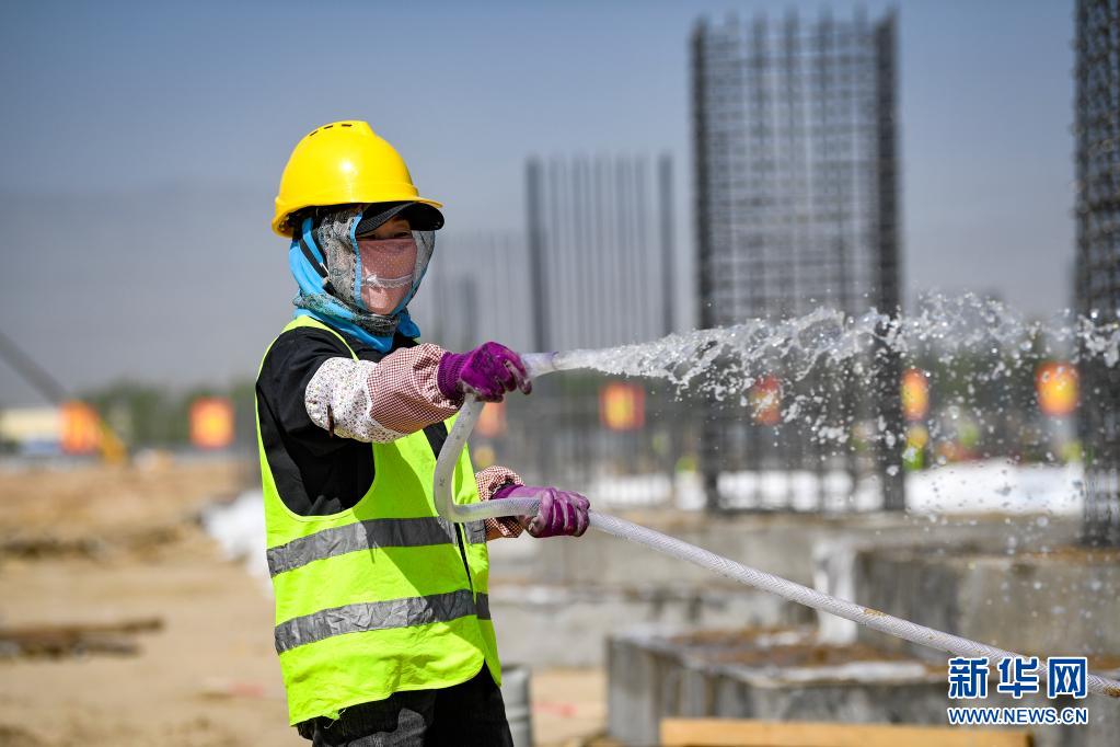 5月1日,寧夏銀川市經(jīng)濟(jì)技術(shù)開發(fā)區(qū)中環(huán)50GW(G12)太陽能級單晶硅材料智慧工廠項(xiàng)目的工人在現(xiàn)場作業(yè)。