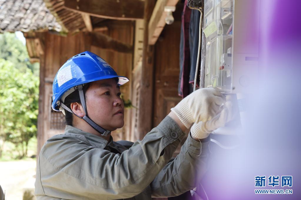 4月30日,在恩施咸豐縣高樂山鎮(zhèn)梅坪村,林麗為村民更換電表配件。