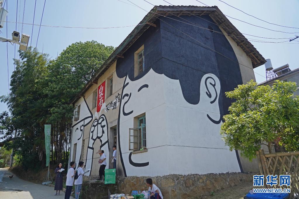 5月1日,參觀者在浮梁縣寒溪村參觀藝術(shù)項(xiàng)目作品。