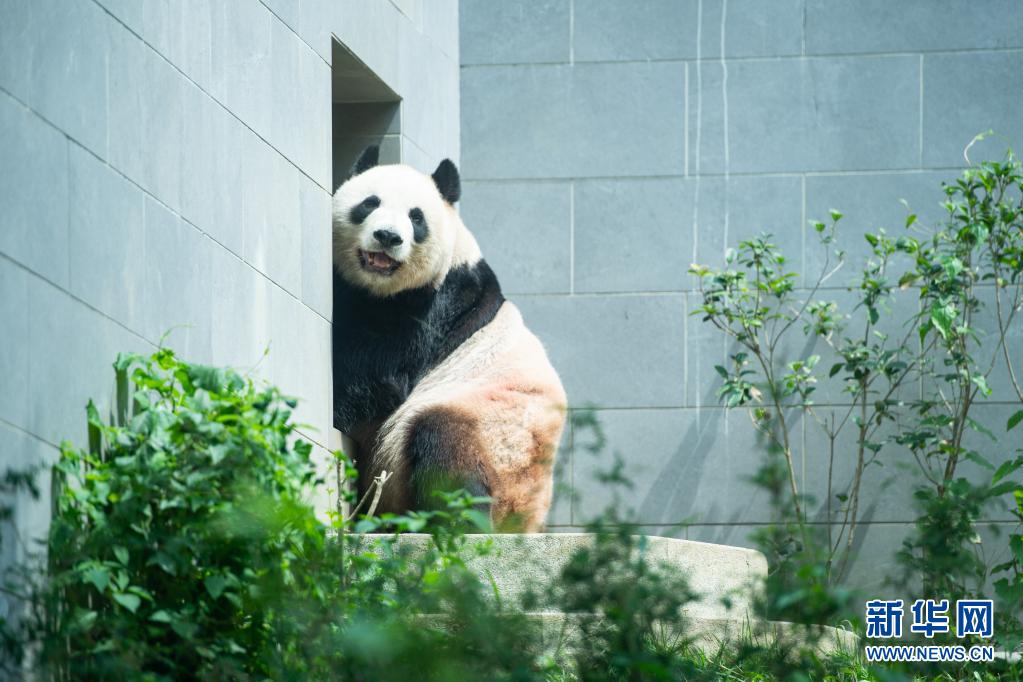 5月1日在澳門大熊貓館拍攝的大熊貓“開開”。
