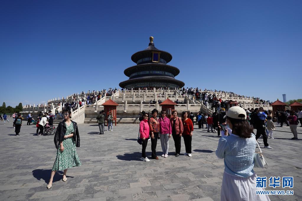“五一”期間,許多游客來(lái)到北京天壇公園參觀游覽,樂享假期生活。