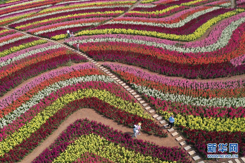 5月2日,游人在湖北省荊門市圣境花谷游玩(無(wú)人機(jī)照片)。新華社發(fā)(彭琦 攝)