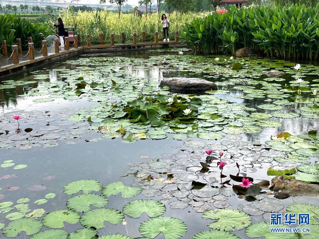 立夏時節(jié),廣西南寧市那考河濕地公園內草木吐翠、鮮花斗艷,一派繁茂景象。