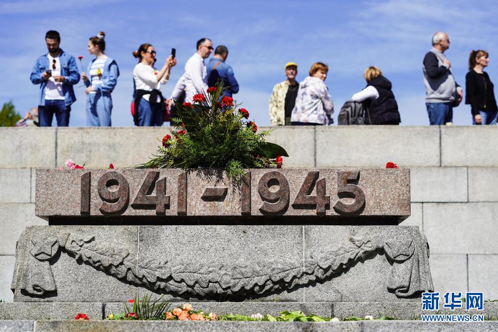 5月9日,人們?cè)诘聡?guó)首都柏林的特雷普托蘇軍烈士陵園駐足。