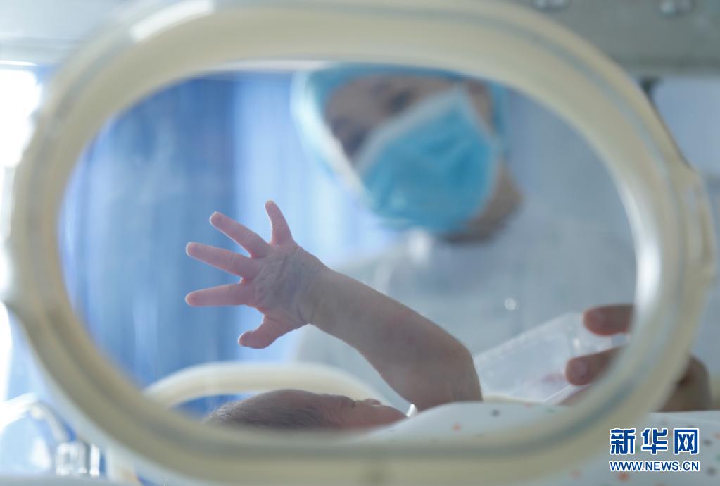 5月11日,在河北省邢臺市南和區(qū)人民醫(yī)院新生兒科,一名護(hù)士在護(hù)理新生兒。
