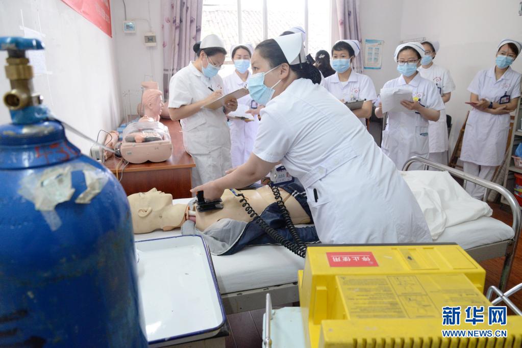 5月11日,江西省撫州市南豐縣人民醫(yī)院的護(hù)士在進(jìn)行除顫技能競(jìng)賽。