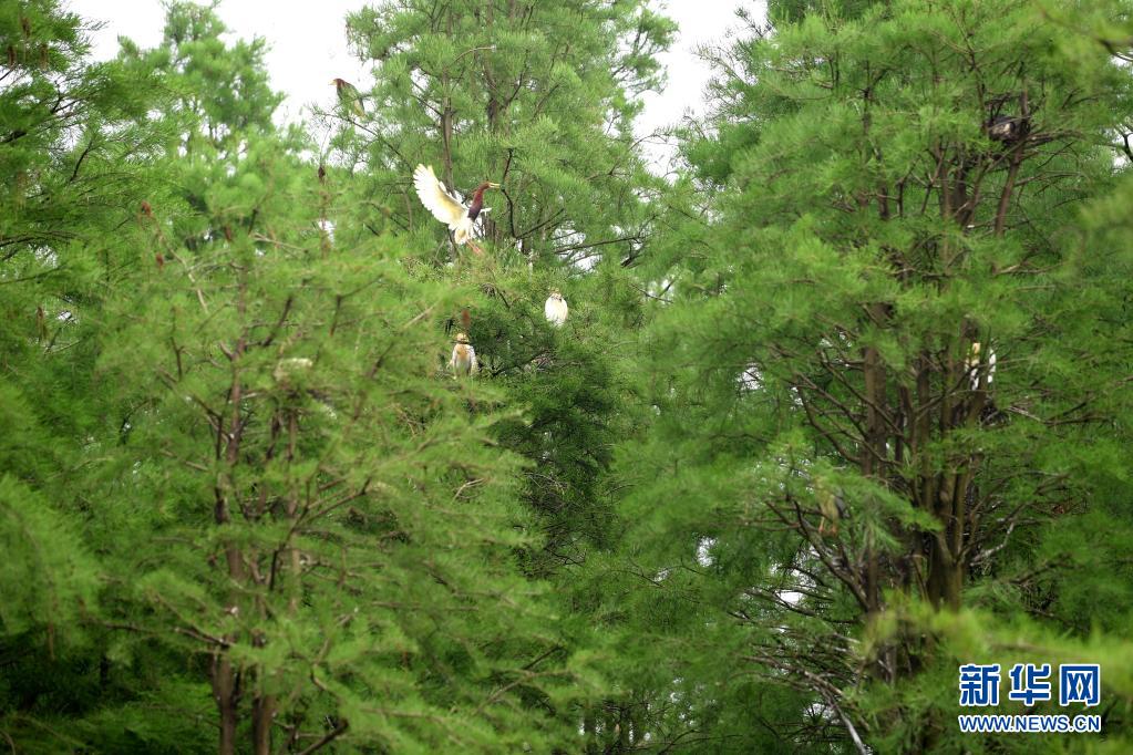 位于安徽省滁州市來安縣雷官鎮(zhèn)的池杉湖國家濕地公園經(jīng)過多年的生態(tài)修復,形成分布數(shù)萬株池杉樹、具有獨特觀賞價值的“水上森林”濕地景觀,成為眾多鳥類生活、棲息的“天堂”。
