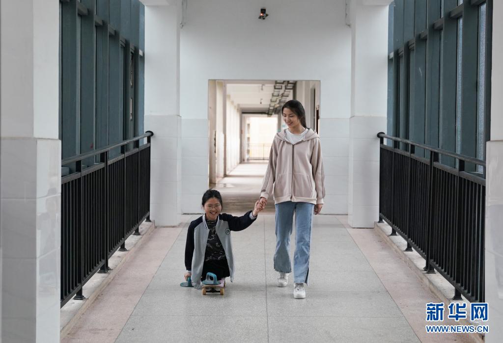 16歲的蔣張子怡是江西上饒中學(xué)高中一年級(jí)的學(xué)生。2010年一場(chǎng)車禍奪去了她的雙腿,如今的她只能依靠滑板代步,用雙手前行,為此,大伙都稱她“滑板姑娘”。