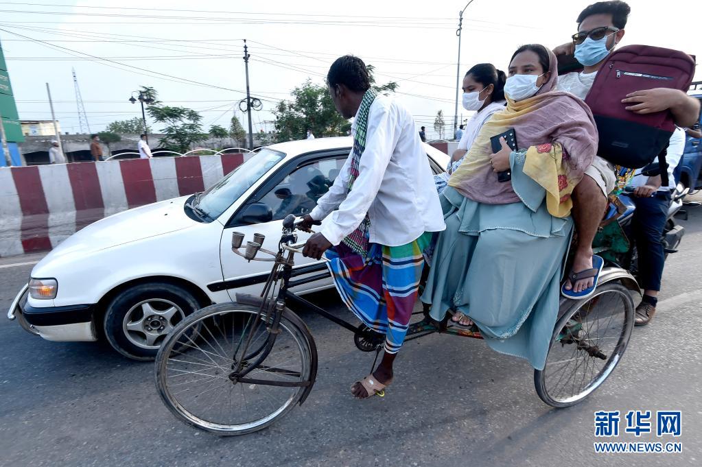 5月17日,返程人員抵達(dá)孟加拉國首都達(dá)卡后,乘坐三輪車前往城市其它地方。