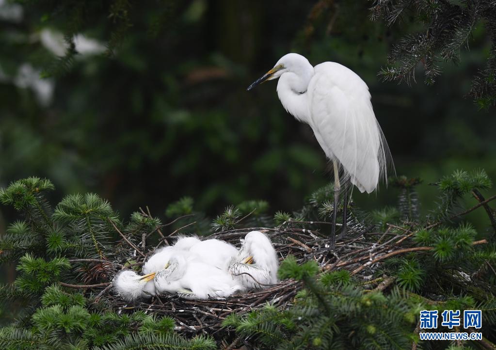 在南昌市新建區(qū)象山森林公園內(nèi),白鷺和雛鳥們?cè)谝黄穑?月18日攝)。