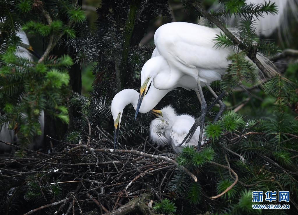 鄱陽(yáng)湖畔白鷺進(jìn)入孵化哺育旺季
