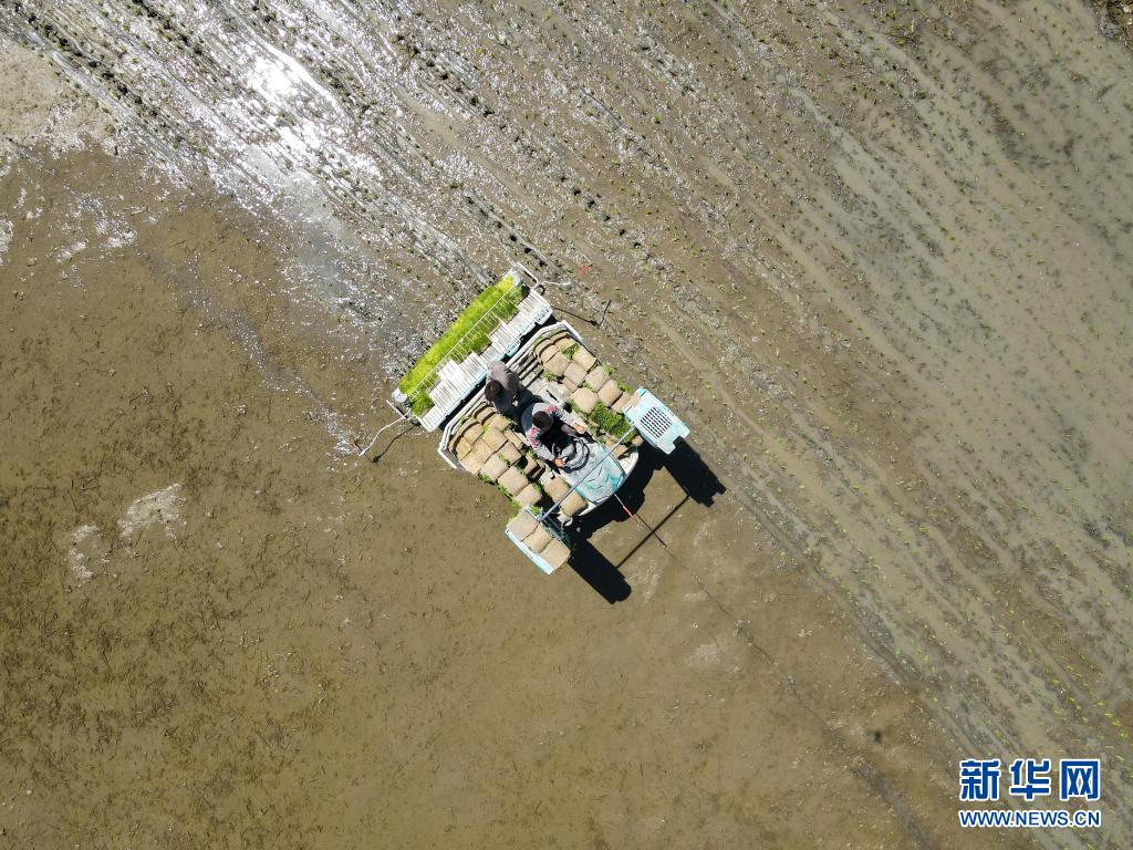 進(jìn)入5月,新疆溫宿縣的11萬(wàn)余畝水稻進(jìn)入插秧期。稻田間,插秧機(jī)往來(lái)穿梭,一片繁忙景象。