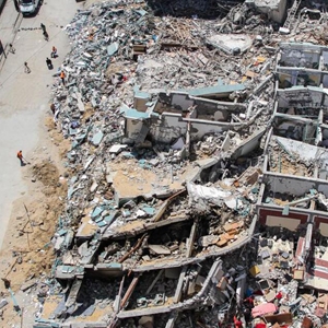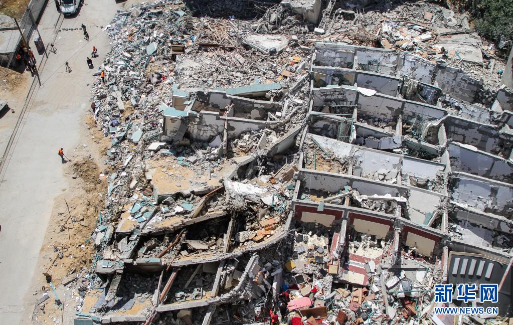 5月23日,巴勒斯坦人在加沙城走過遭以軍空襲損毀的賈拉塔。5月10日以來,以色列與加沙地帶武裝組織之間爆發(fā)嚴(yán)重沖突。20日晚,哈馬斯與以色列方面各自宣布,雙方已達(dá)成?;饏f(xié)議,?;饛?1日凌晨開始。新華社發(fā)(里澤克·阿卜杜勒·賈瓦德攝)