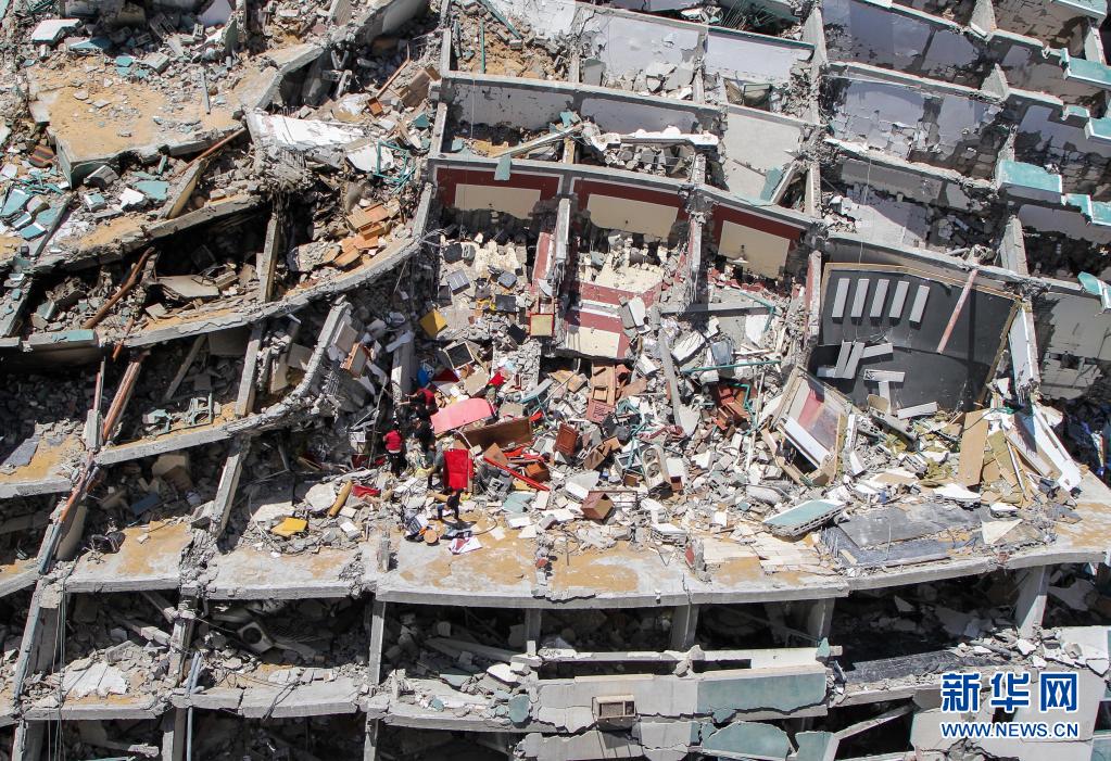 這是5月23日在加沙城拍攝的遭以軍空襲損毀的賈拉塔。5月10日以來,以色列與加沙地帶武裝組織之間爆發(fā)嚴(yán)重沖突。20日晚,哈馬斯與以色列方面各自宣布,雙方已達(dá)成停火協(xié)議,停火從21日凌晨開始。新華社發(fā)(里澤克·阿卜杜勒·賈瓦德攝)