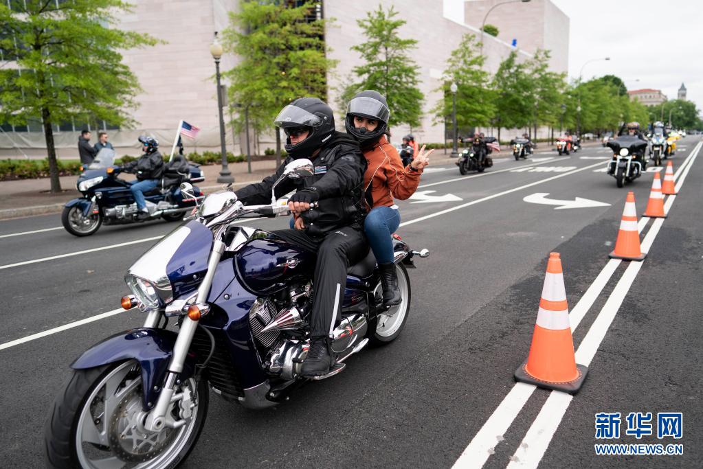 5月30日,在美國(guó)首都華盛頓,參加“滾雷”摩托車大游行的車輛駛過(guò)街頭。