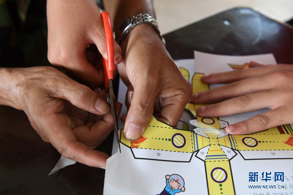 在廣西上思縣那琴鄉(xiāng)中心小學逢通村教學點,梁志雄老師在教學生做手工(6月16日攝)。新華社記者 陸波岸 攝