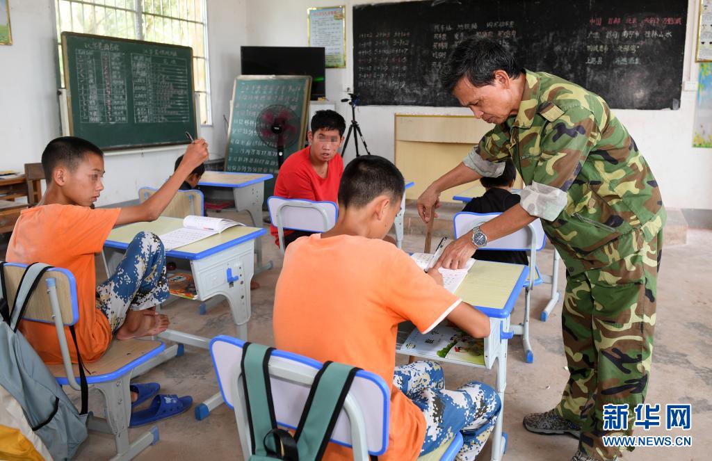 在廣西上思縣那琴鄉(xiāng)中心小學逢通村教學點,梁志雄老師在輔導學生(6月16日攝)。新華社記者 陸波岸 攝
