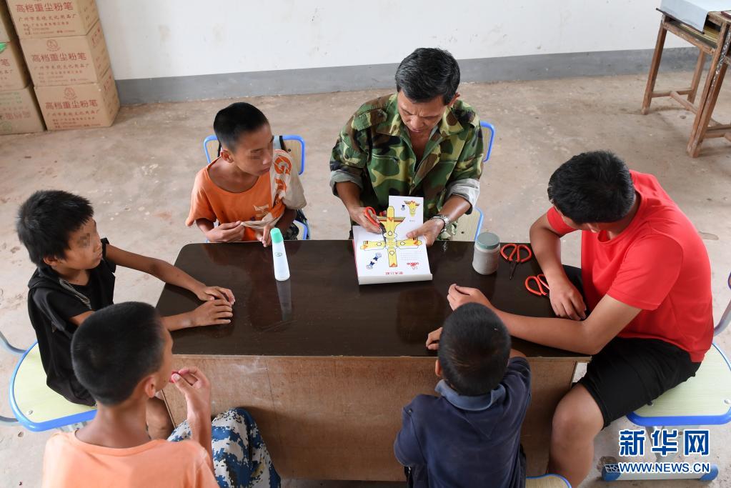 在廣西上思縣那琴鄉(xiāng)中心小學(xué)逢通村教學(xué)點(diǎn),梁志雄老師在教學(xué)生做手工(6月16日攝)。新華社記者 陸波岸 攝
