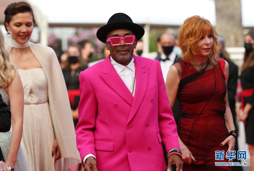 7月6日,第74屆法國(guó)戛納國(guó)際電影節(jié)主競(jìng)賽單元評(píng)委會(huì)主席、美國(guó)導(dǎo)演和制片人斯派克·李(中)攜主競(jìng)賽單元評(píng)委出席開(kāi)幕式紅毯。