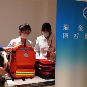 上海交通大學(xué)醫(yī)學(xué)院附屬瑞金醫(yī)院的醫(yī)護(hù)人員擔(dān)當(dāng)志愿者,在中共一大紀(jì)念館設(shè)立醫(yī)療救治點(diǎn),提供醫(yī)療保障任務(wù)(7月11日攝)。